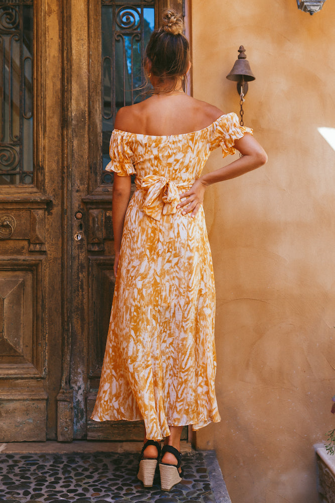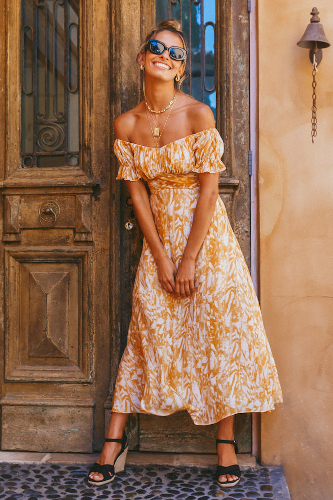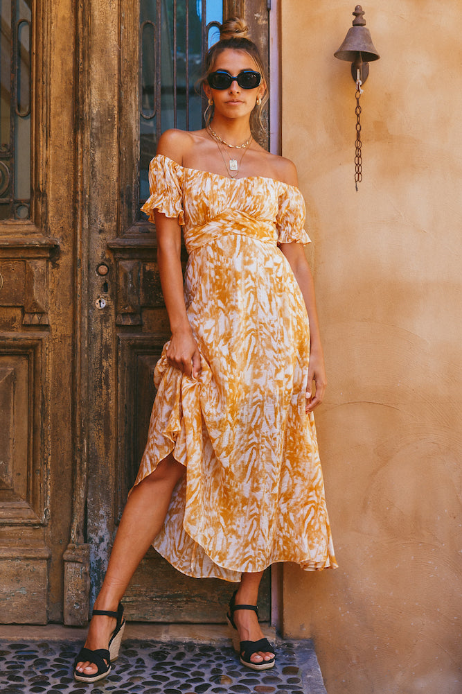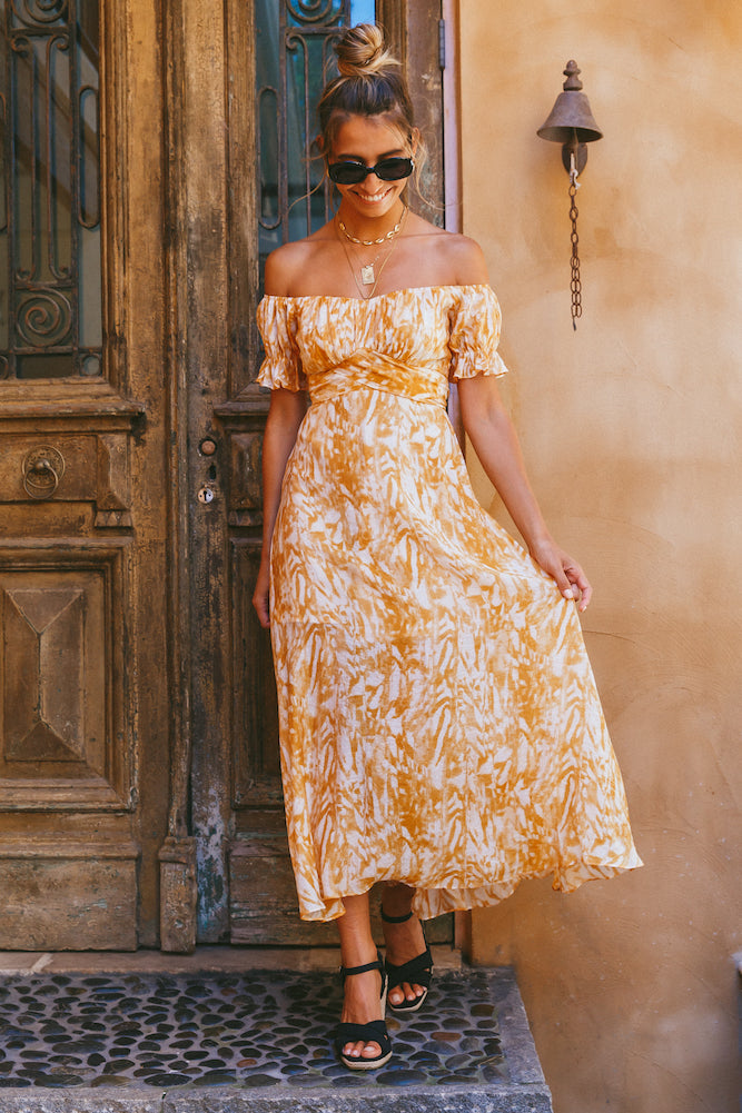 Stand out as you wait for your coffee in Paris in our Latte Art Maxi Dress! We're styling ours with mules and oversized sunglasses.