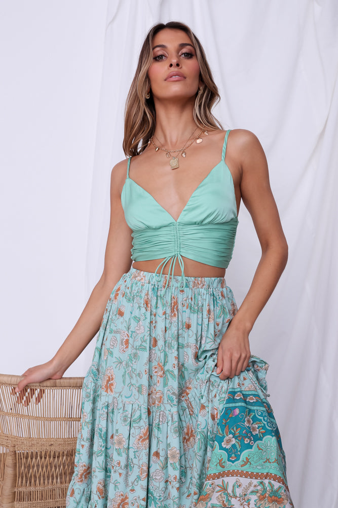 Release your inner romantic with our Butterfly Kisses Crop Top. This lush ruched style is best teamed with jeans or a ruffled mini skirt.