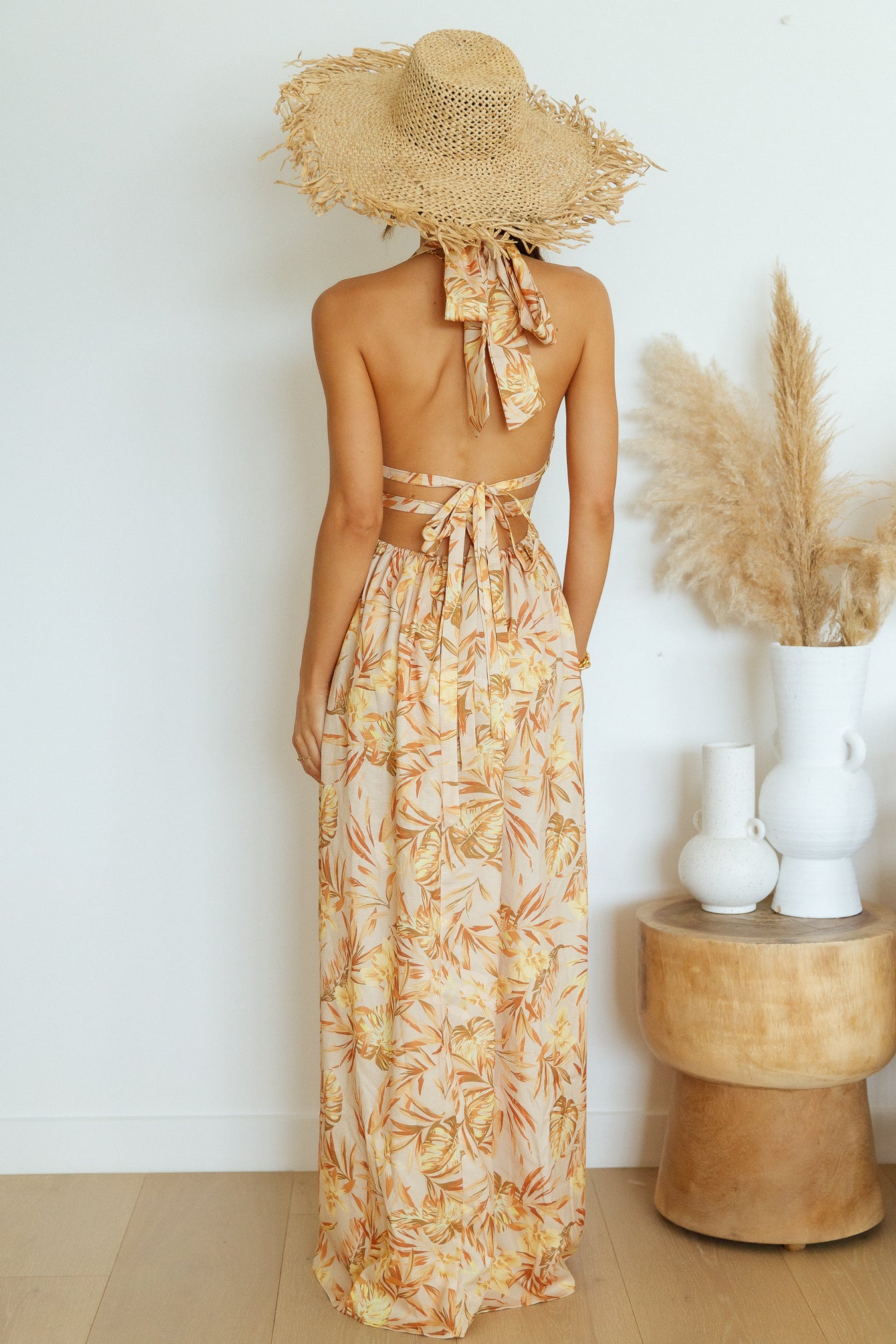 You will be feeling like the main character in the Hold Me Close Maxi Dress. Dream of more and style yours with neutral block heels and gold adornments for your next day out in the sun.