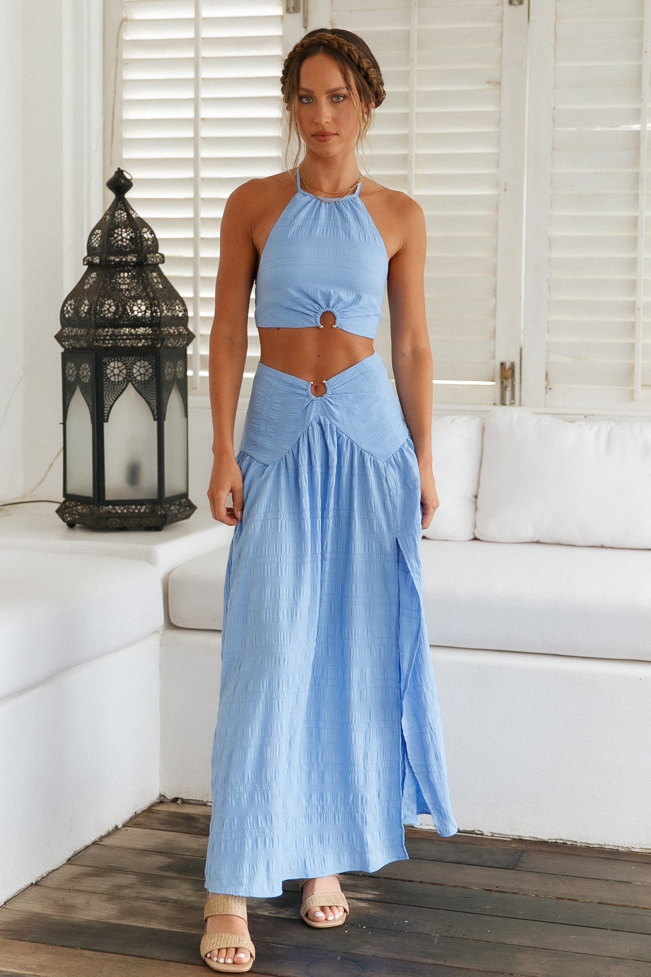 For cool nights under the stars and sounds of the sea, take it slow in our Lemon Tree Maxi Skirt. We'll be styling ours with the matching top and gold adornments.