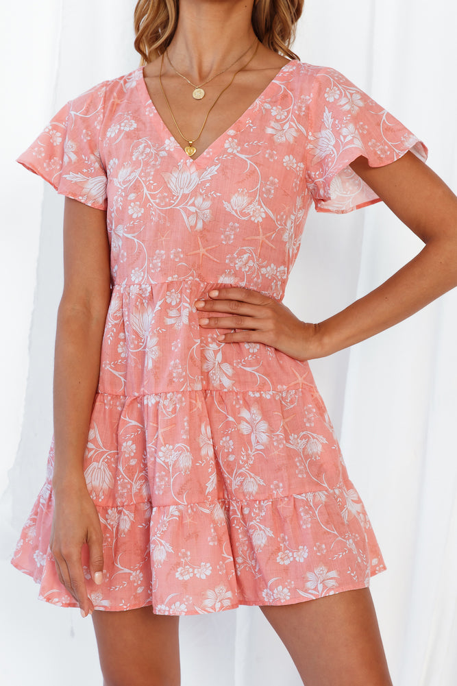 Our Morning Musings Dress was made vacaying to the tropical Seychelles! Team this ruffled mini dress with simple slides and a wide straw sun hat!