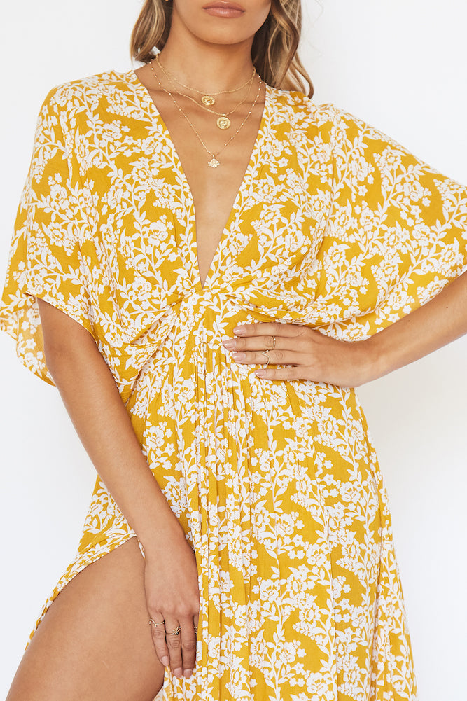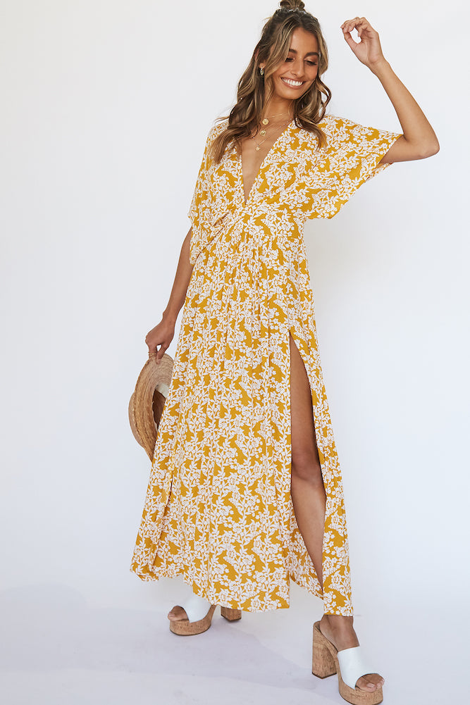 Embrace your inner wild child with our Phoenix Maxi Dress. This intricate floral print style features thigh high splits so you can explore in style. Just add a woven hat and nude mules for the look we love!