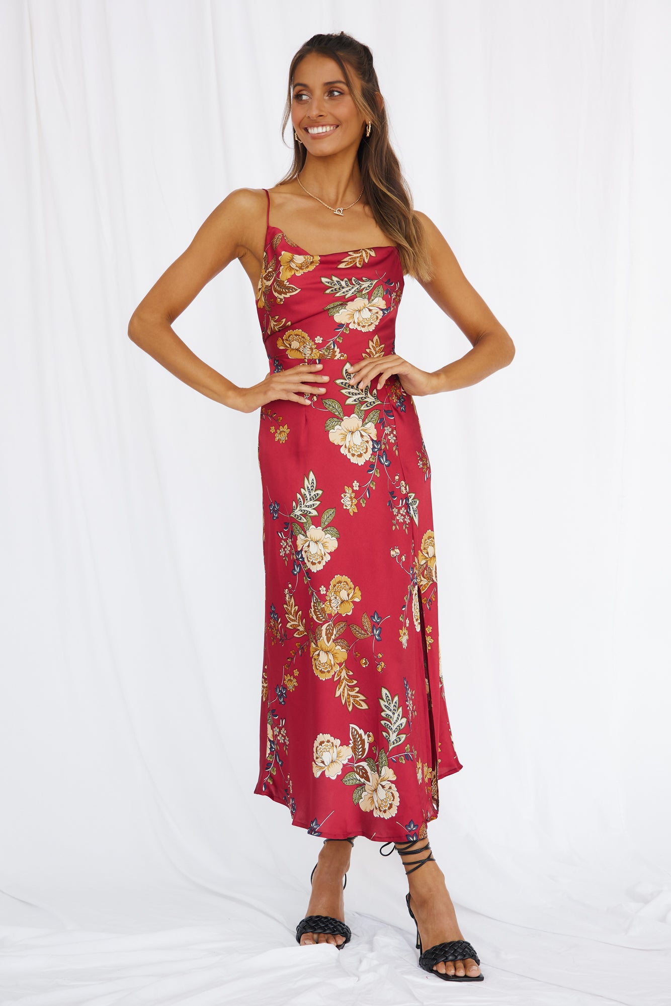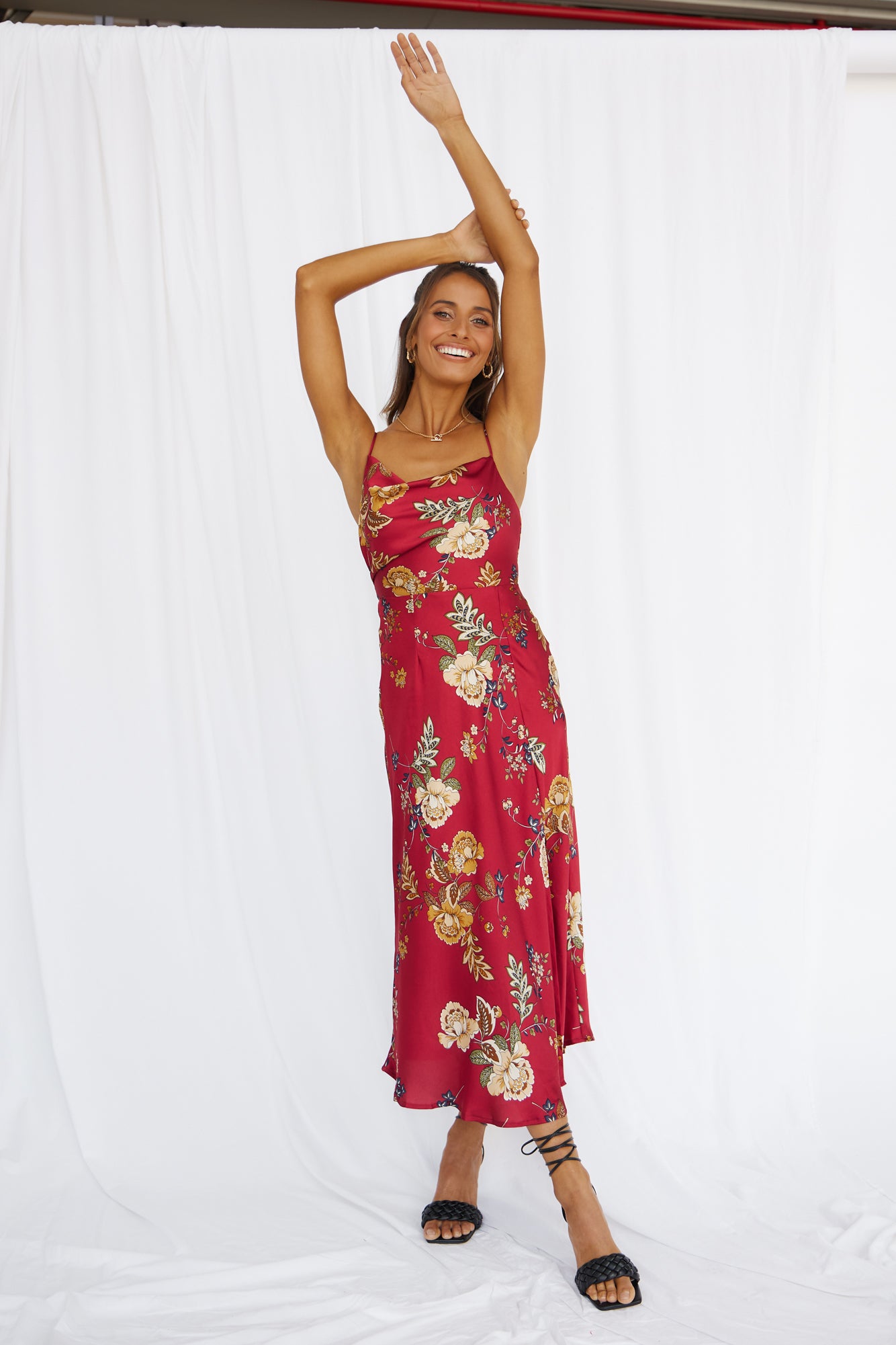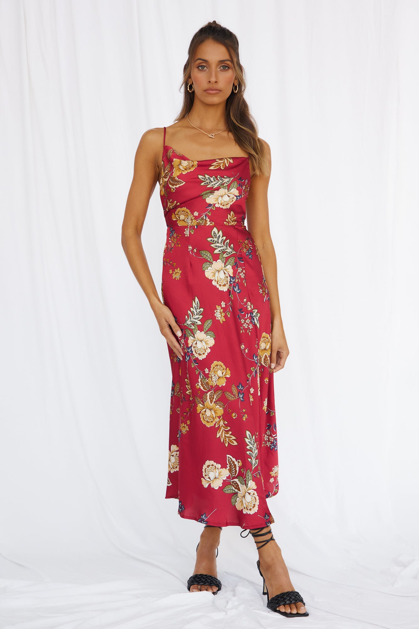 The Round The World Maxi Dress has us feeling red-carpet ready for those cool evenings in New York! Style yours with neutral heels and gold adornments.