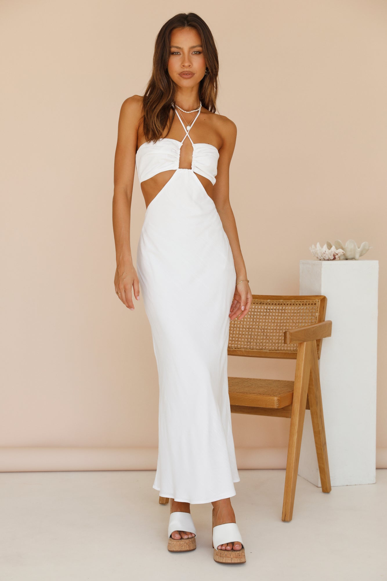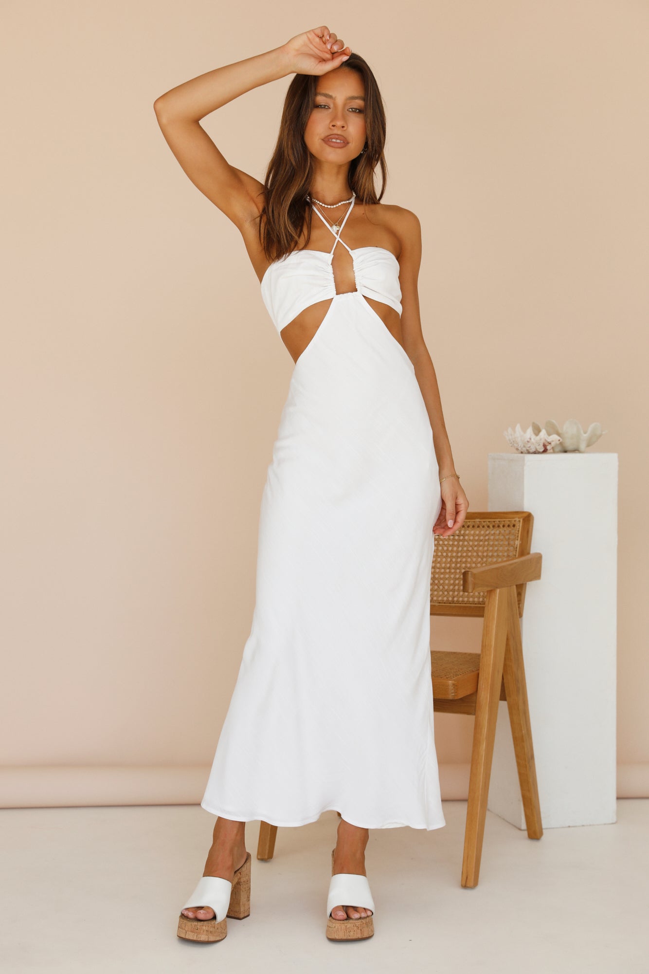 From city chic to exploring the backstreets of Positano, the Cedros Midi Dress by RUNAWAY THE LABEL will have you loving all things good. Style yours with neutral block heels and gold adornments.
