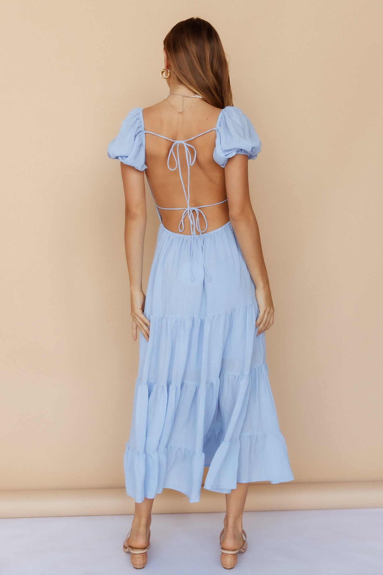 - Open back with tie detail