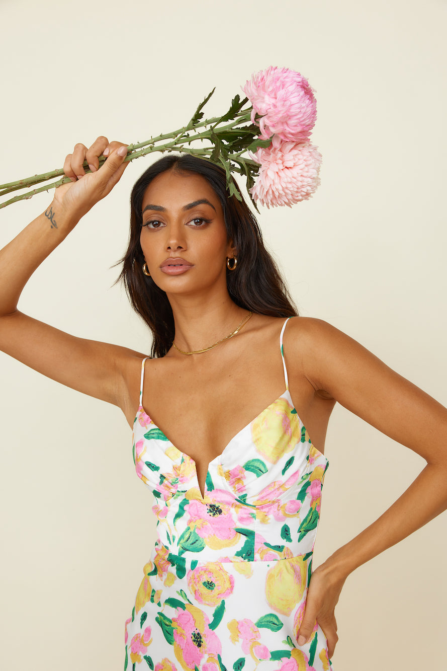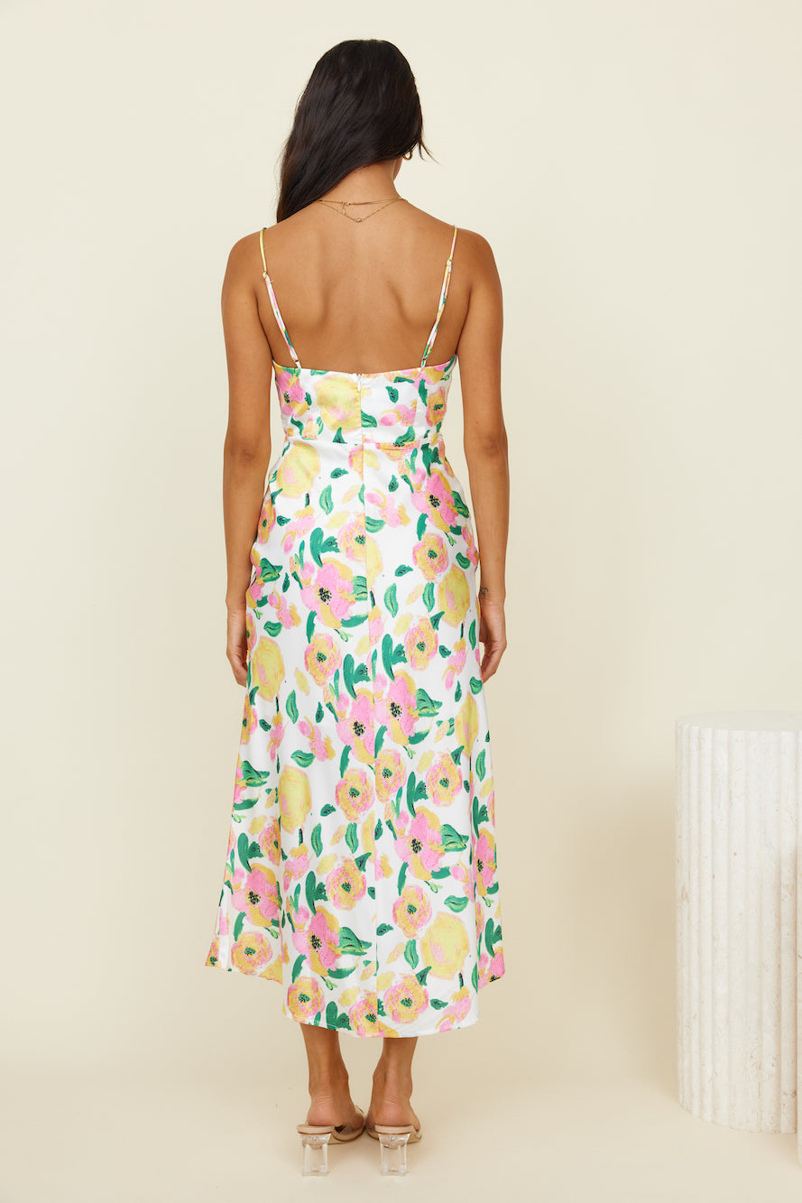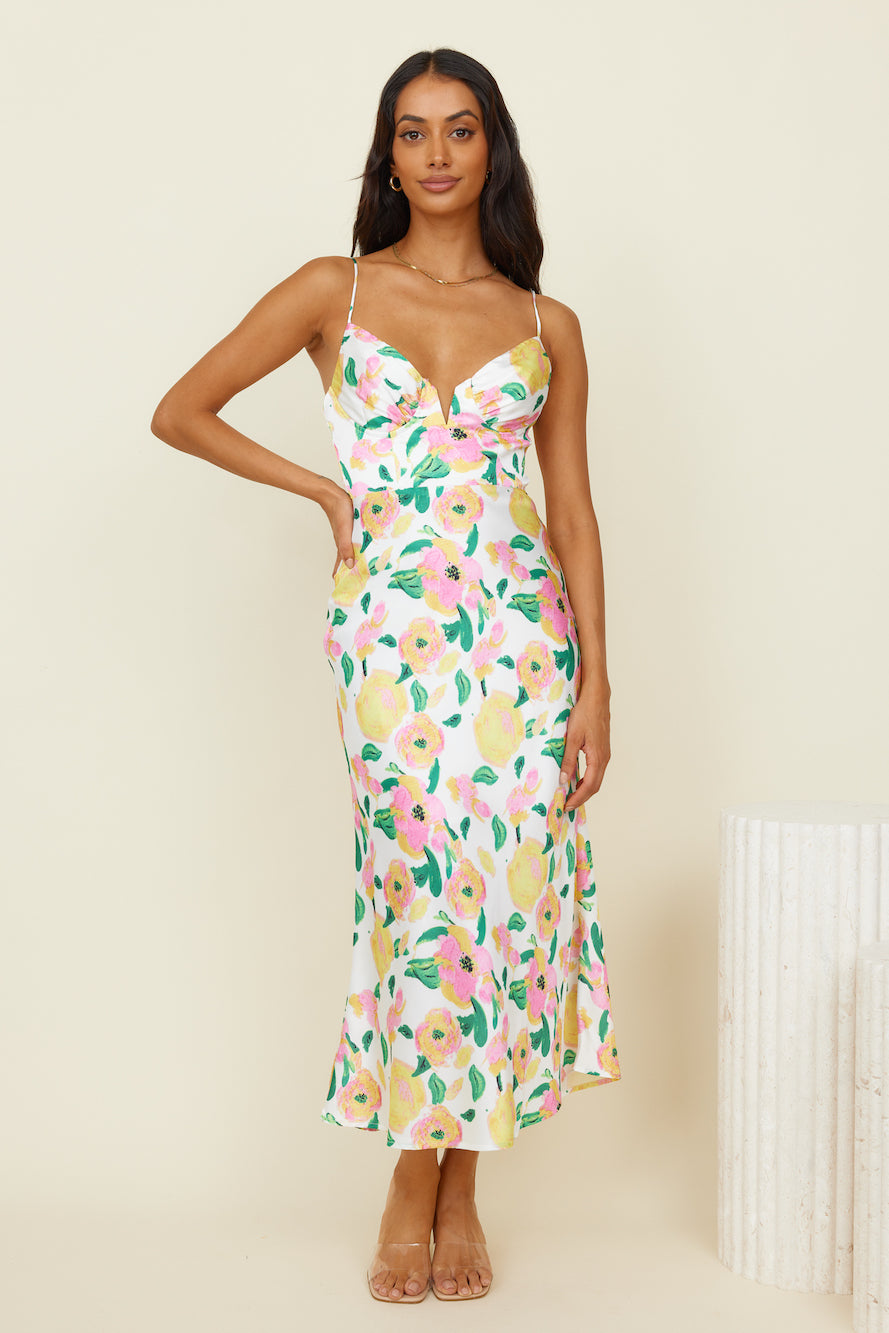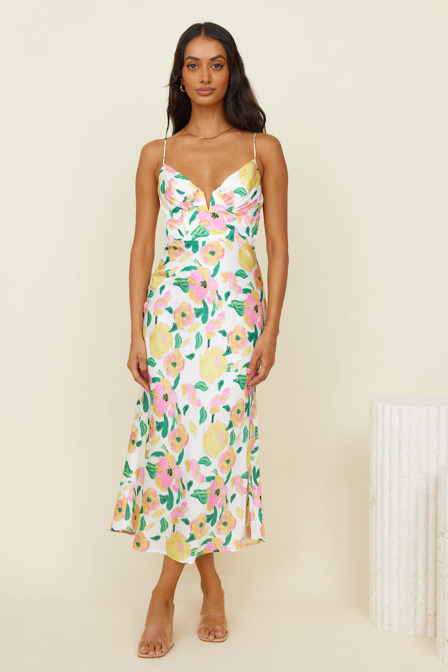 We're embracing love and chasing our dreams in the Summer Aurora Maxi Dress! Style yours with neutral block heels and gold adornments.