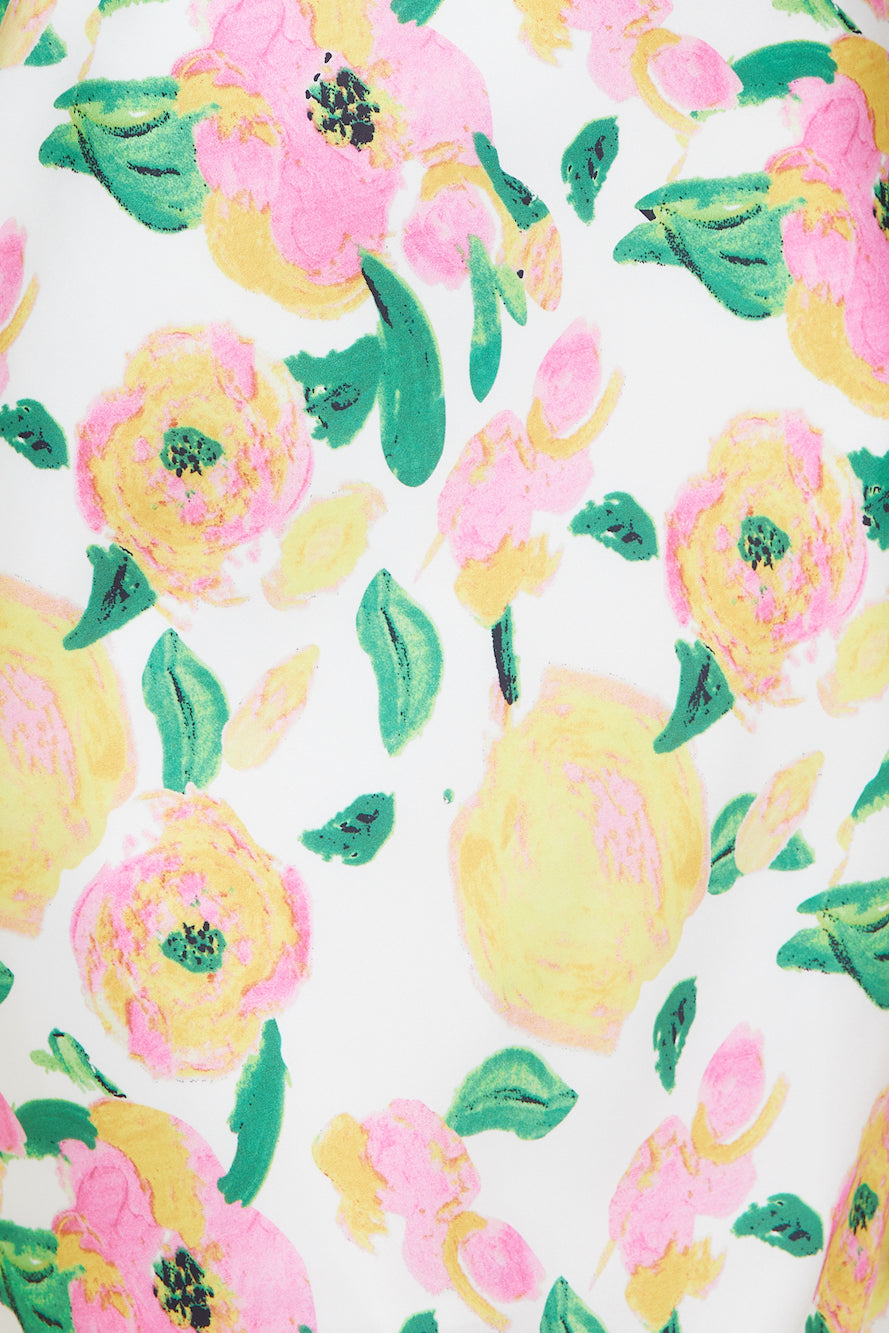 - Floral print throughout