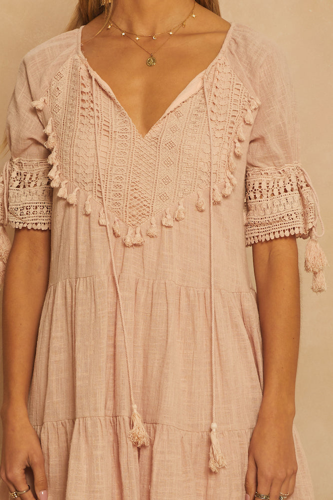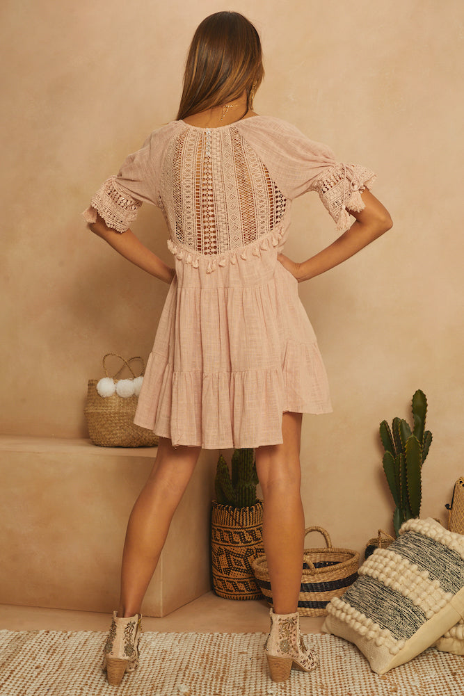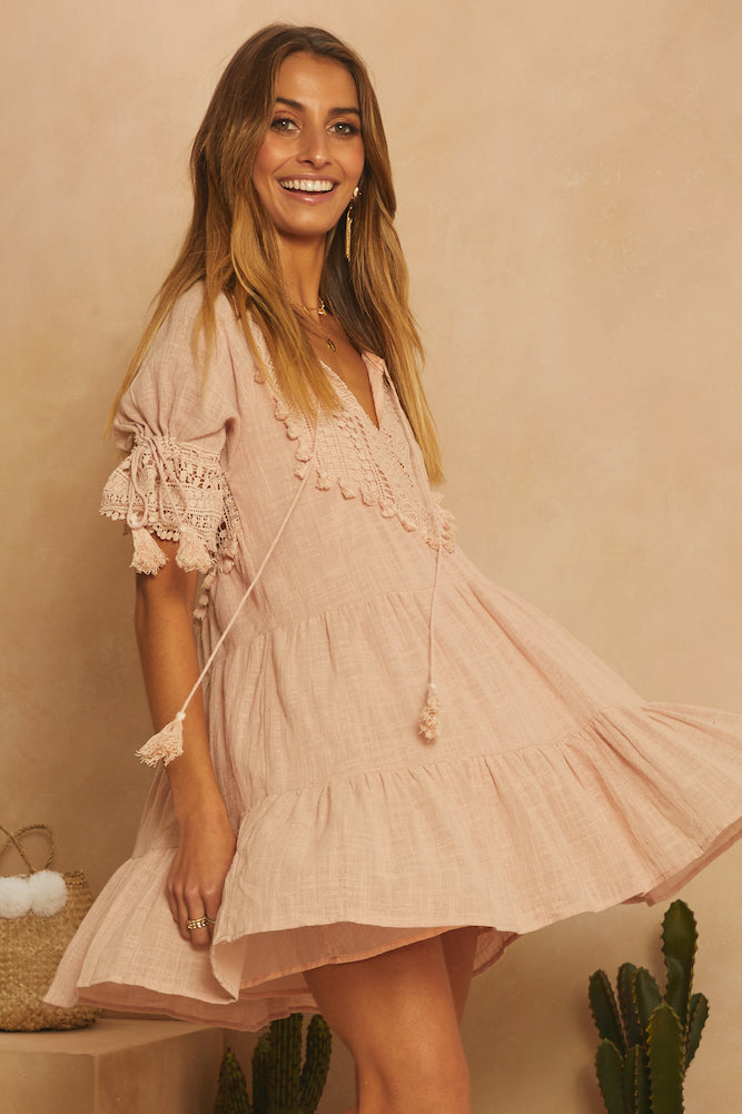 We're a little smitten with the delightful crochet print on our Wave After Wave Dress - pair it with a red beret and sandals!