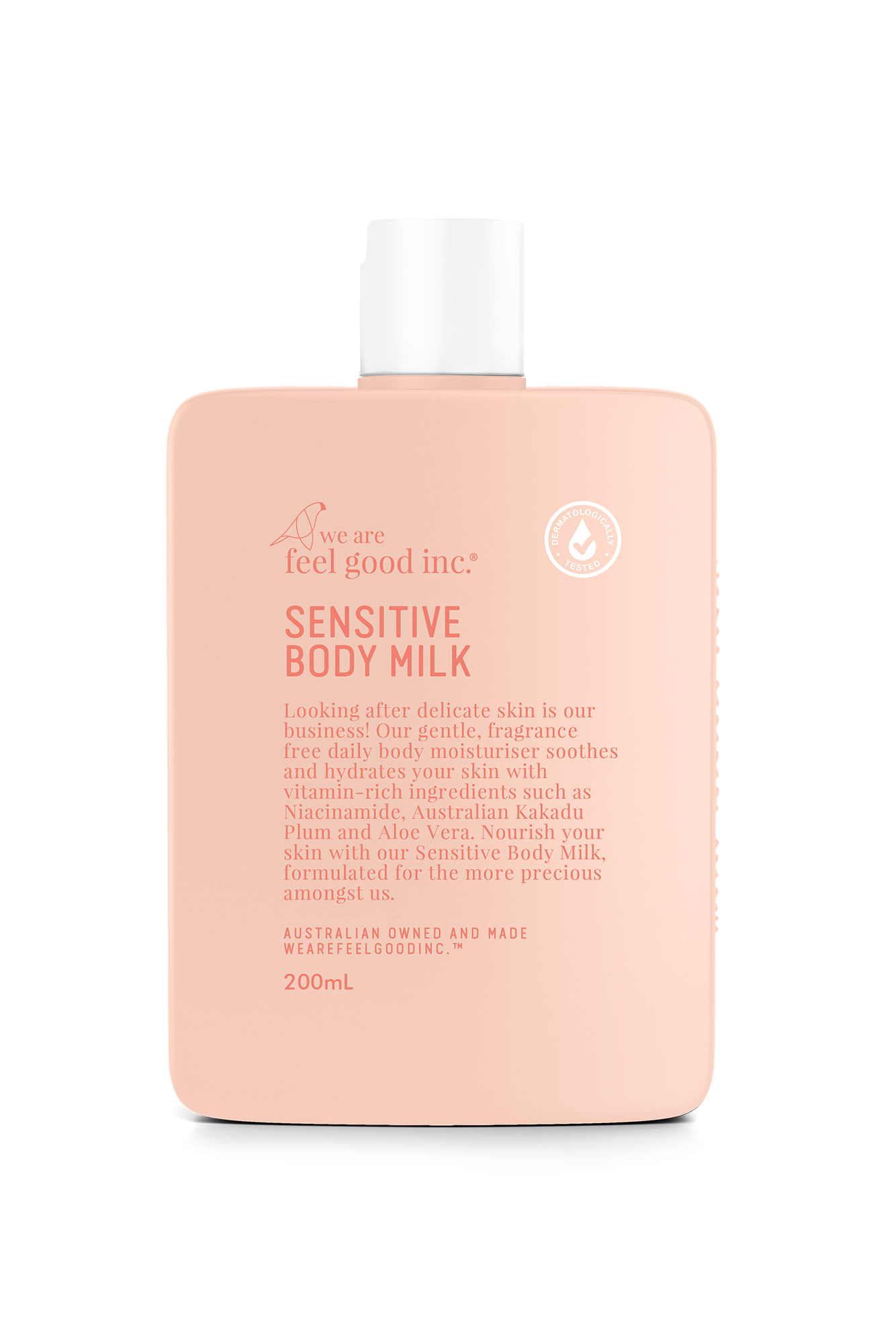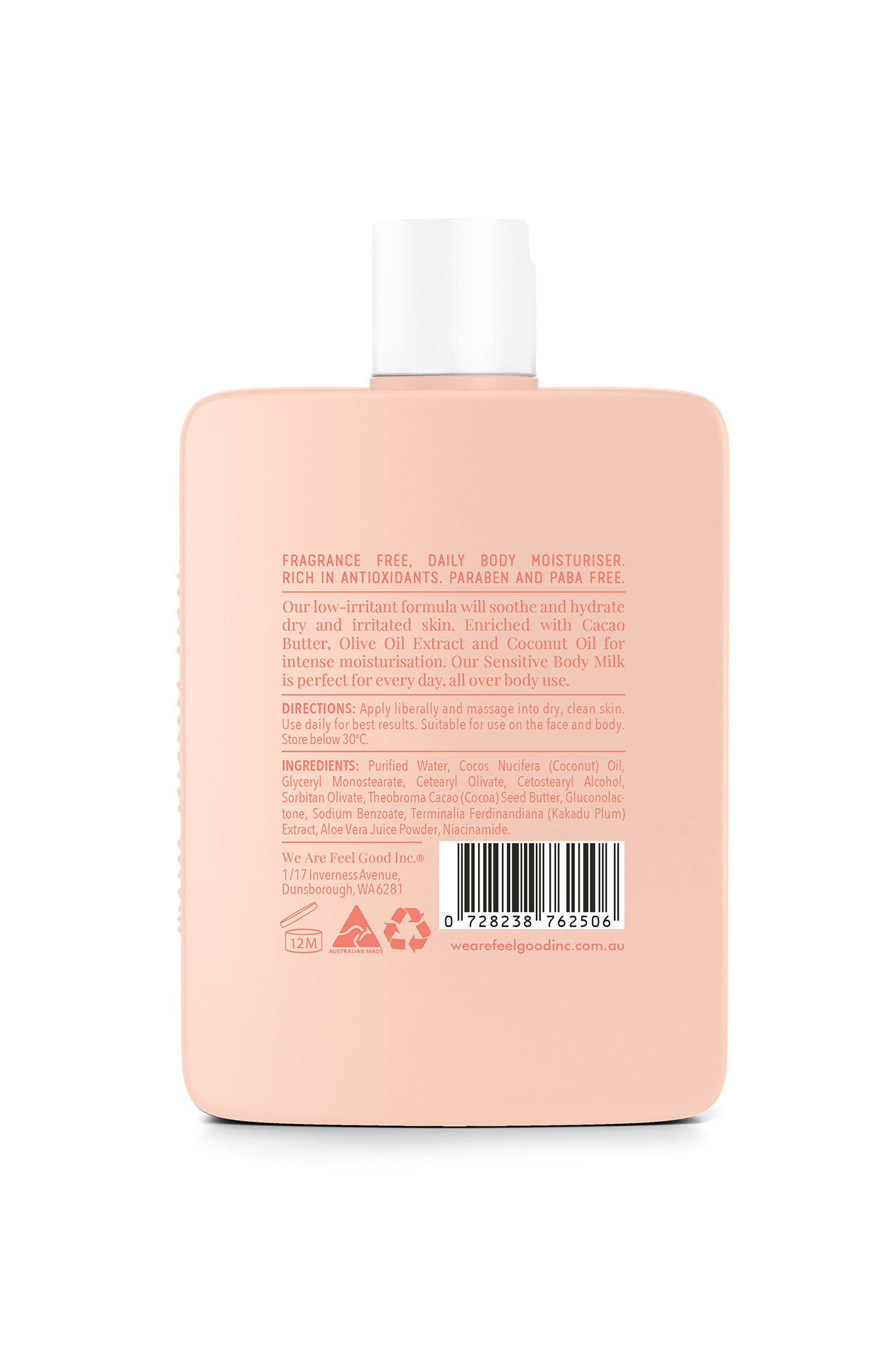 The Sensitive Body Milk by WE ARE FEEL GOOD INC is your new go-to moisturiser year-round. Enriched with vitamin-rich ingredients including Niacinamide, Australian Kakadu Plum and Aloe Vera, your skin will love you when you use daily as part of your skincare regime. Suitable for most skin types, and offers a non-greasy nourishing feel on the skin.
